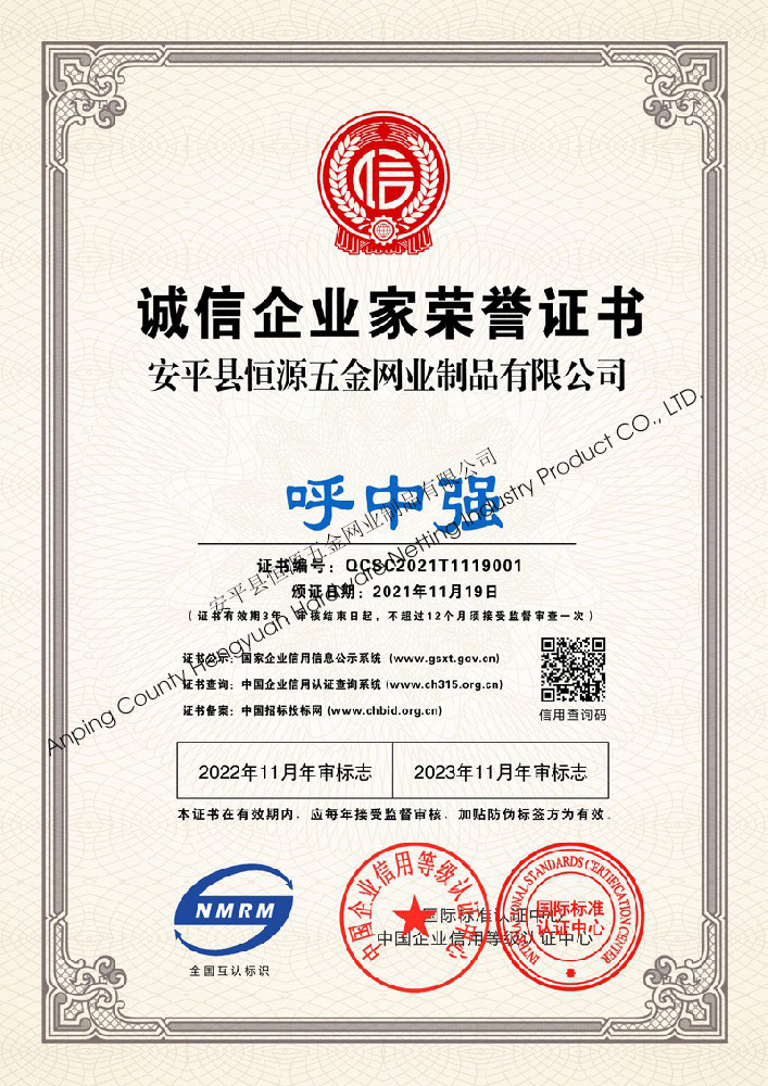 多年來(lái),安平縣恒源五金網(wǎng)業(yè)制品有限公司堅(jiān)持“科技興企、質(zhì)量立業(yè)”的經(jīng)營(yíng)理念和“誠(chéng)心為本、客戶至上”的合作宗旨,優(yōu)化生產(chǎn)工藝,打造優(yōu)質(zhì)產(chǎn)品,提供完善的服務(wù),受到國(guó)內(nèi)外客戶的一致好評(píng),產(chǎn)品行銷全國(guó)各地,并出口美國(guó)、德國(guó)、韓國(guó)、日本、臺(tái)灣等國(guó)家和地區(qū)。